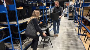 Stoelen uit het magazijn halen (Foto: Theo Sikkema/RTV Noord)